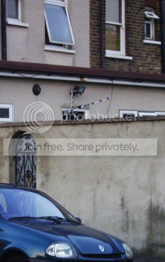 The road runs virtually north/south (to the left of the picture is 13° EGN. ) Crystal Palace is, as I said earlier, 214° EGN, so where is that array pointing? Could it possibly be pointing to a) a signal from Crystal Palace reflected off some wall? b) Alexandra Palace relay, which although a relay, does transmit with horizontal polarization c) Edmonton relay, which although a relay, does transmit with horizontal polarization d) Hampstead Heath relay, which although a relay, does transmit with horizontal polarization e) Kensal Town relay, which although a relay, does transmit with horizontal polarization Inquiring minds demand to know the answer to this perplexing puzzle! ;+) |